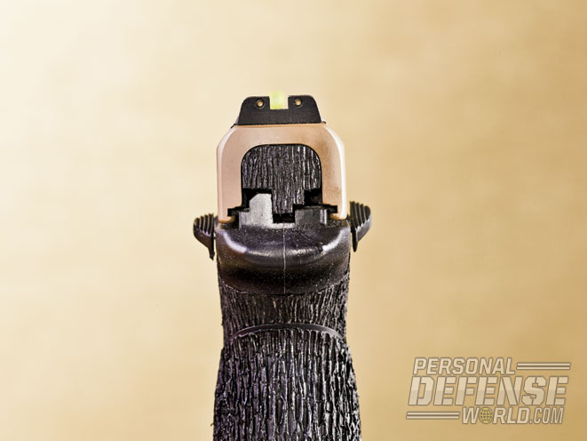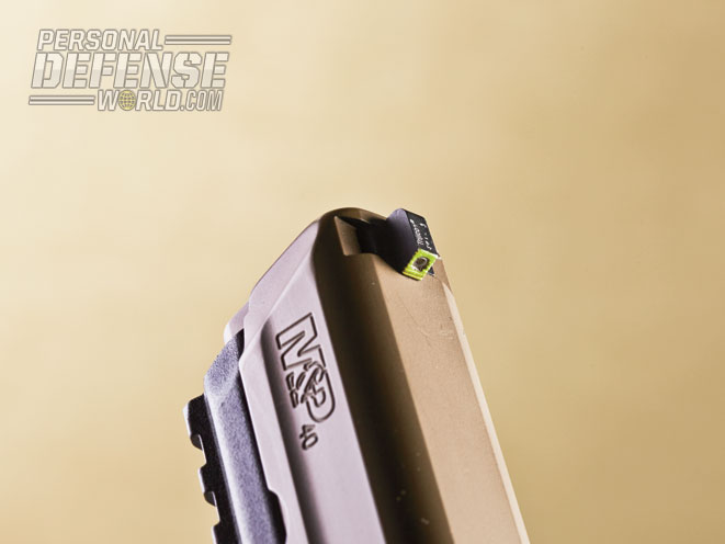 Like some shooters with more than a few miles on their odometers, I have an issue with most of the popular three-dot sight systems. If I really bear down, I can make them work, despite the fact that the dots may appear a bit fuzzy. The answer for my M&P was a set of Bowie Tactical Concepts/AmeriGlo Operator Sights. The three tritium dots for visibility in low light are maintained, however the front is coated with a high-visibility neon yellow for quick pickup.