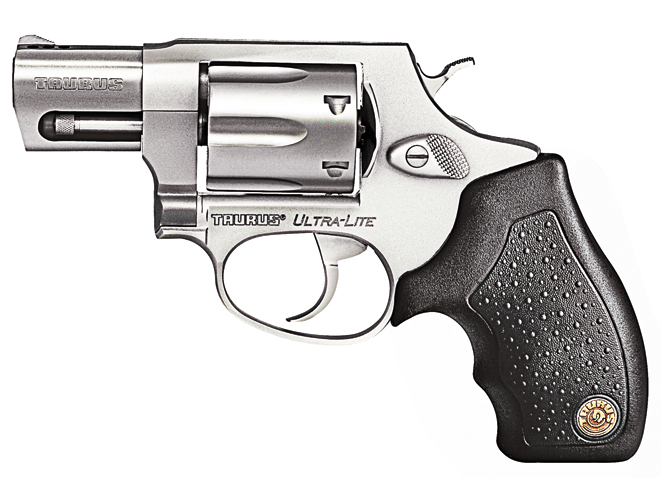Taurus Ultra-Lite models use an aluminum alloy frame to reduce carry weight and are available with all of the same features as other Model 85 revolvers chambered in .38 Special +P. There are two principal versions in blue or matte stainless finishes, and carry weight is reduced from the standard Model 85’s 21 ounces to a very modest 17 ounces. All models are double-action/single-action and have an overall length of 6.5 inches. An Ultra-Lite version of the Model 850 CIA hammerless is also available.
