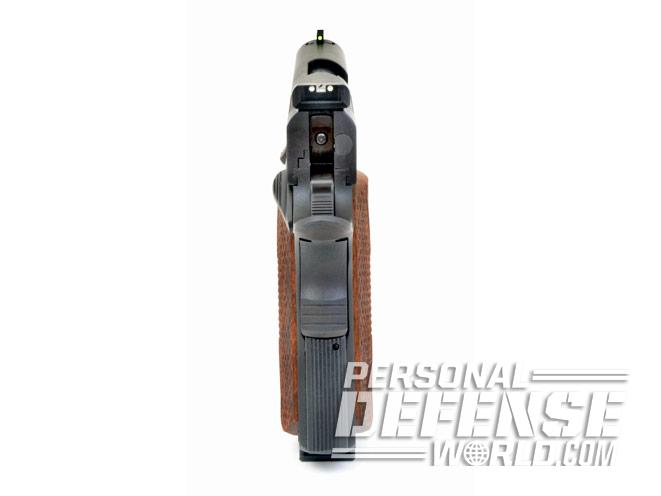 The GI-style thumb safety on the Compact Carry is very easy to operate and clicks solidly into and out of lock. The smooth operation of the safety and slide release is another sign of a quality fit. The G10 grips and grip strap serrations provided a solid, tactile surface for either bare hands or gloves, and even the handsome, finely checkered diamond-pattern walnut grips had the solid feel of an original 1911 pistol.