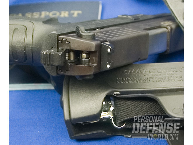 A small equipment rail rides on the underside of the frame, a nice idea for the PK380, especially if one chooses it for a home-defense weapon. The compact X2L (light and laser combination) from Insight Tech-Gear locked securely in place and was easily operated using the support hand thumb, offering 40 lumens from a Xenon bulb along with a red laser.