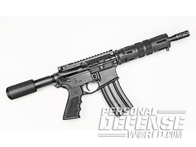 When faced with the threat of a home invasion, no man ever wants to defend himself with the smallest-caliber, lowest-capacity firearm available. However, there are always compromises to be made when finding the right balance of gun characteristics for personal protection. The AR pistol makes a lot of sense to many people. It offers full-capacity magazines to address multiple attackers, long barrel lengths for increased accuracy and bullet performance and maneuverability greater than a standard long gun. Additionally, many of these pistols still offer the increased performance from cartridges often associated with rifles.