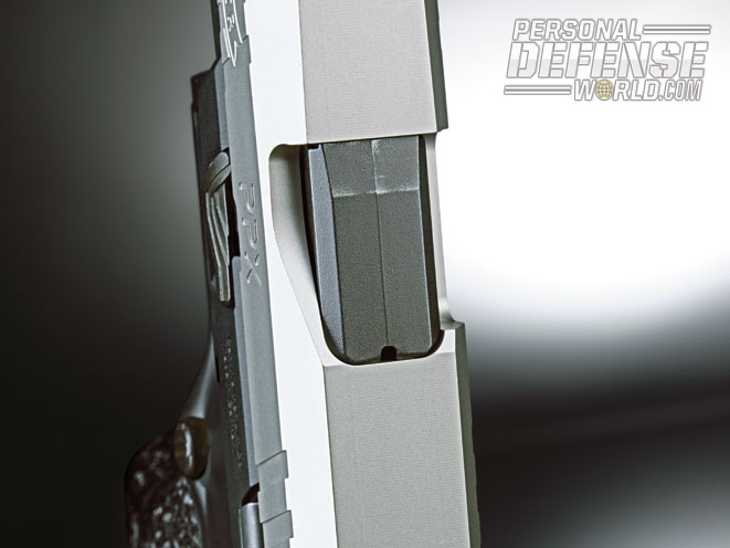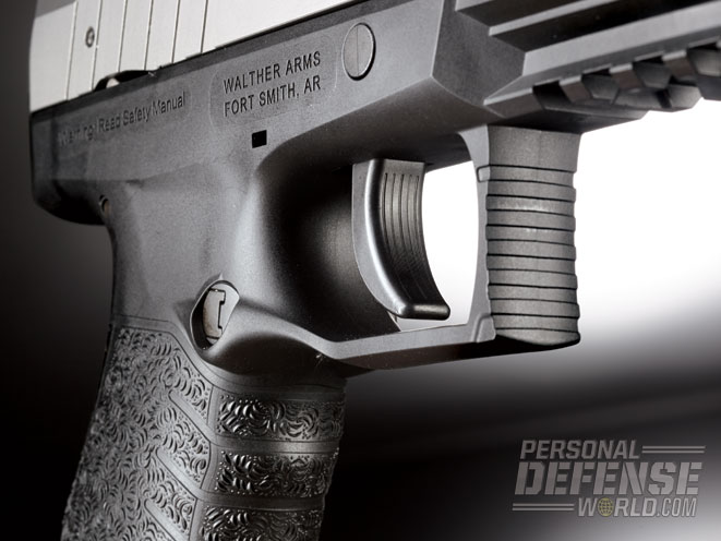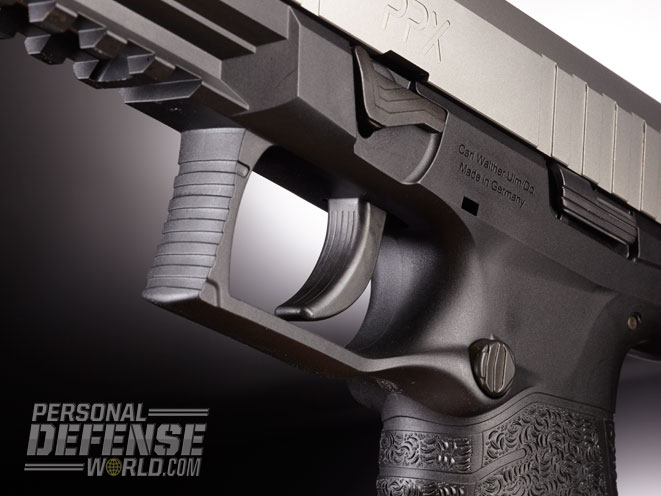 No external safeties are on the PPX, but the gun does have internal safeties that help prevent accidental discharge if the gun is dropped. Other than the magazine release, there are only two external controls: a slide stop lever and a takedown lever. The slide stop lever is not ambidextrous, and is not reversible. It can only be released from the left side of the gun.