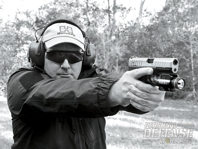 A Picatinny-style accessory rail is integrated with the polymer frame. Adding a light or laser is straightforward and easy to do. I added a Streamlight TLR-2 G to the PPX and found the mount was rock solid. When I later shot the pistol, the light did not loosen up at all. The squared-off front of the triggerguard allowed me to mount the TLR-2 G far back on the accessory rail and within easy reach of my finger.