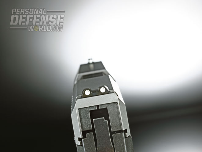 Weight is minimized through the use of a polymer frame. As a former cop who carried both all-metal and polymer-framed handguns on patrol, I can attest to the fact that plastic guns are much easier on the body to carry. In addition to the lighter weight, they tend to require less maintenance. I can’t count the number of times I had to replace the grip screws on another manufacturer’s pistol due to seemingly unstoppable corrosion.