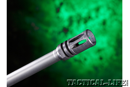 Franklin Armory’s LTW features many of today’s desirable AR attributes. The 16-inch, lightweight-contoured barrel has a 5.56mm chamber and is treated inside and out with a black, salt-bath-nitride finish, which hardens all of the barrel’s metal to 60 Rockwell to a depth of 0.040 inches. The barrel has a 1-in-9-inch twist rate, which should be perfect for the traditional, near-55-grain bullet weights commonly used for practice and which perform so well at the typical distances patrol carbines will be deployed. Surrounding the LTW’s 4140 chrome-moly steel barrel, with its carbine-length gas system and A2-style flash suppressor, is a CAR-type polymer handguard with aluminum liners.