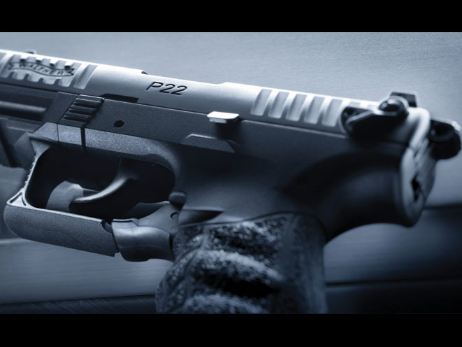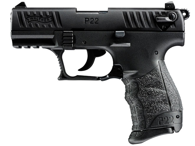 I recently tested the Walther P22, a polymer-framed, 10-shot pistol chambered in .22 LR. This is a hammer-fired pistol with traditional DA/SA operation. It has a slide-mounted safety on both sides that blocks the firing pin so the hammer can be manually lowered safely. It also has a magazine disconnect safety so the gun won’t fire without the magazine inserted and a paddle-style magazine release that can be used by right- or left-handed shooters. There is also an accessory rail at the front for installing a light or laser.
