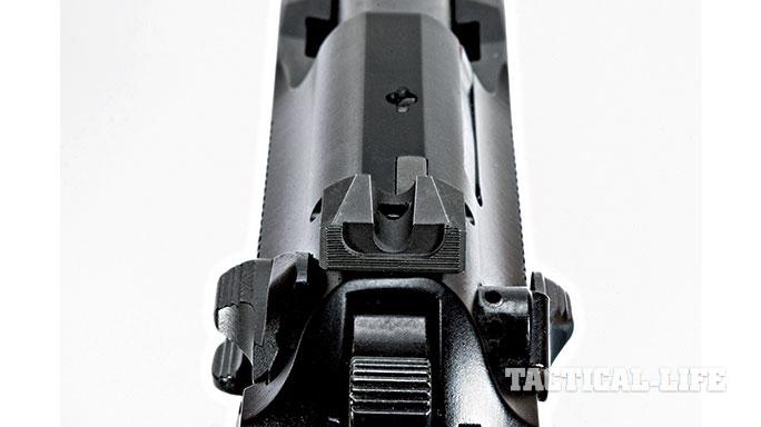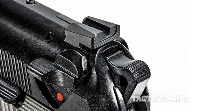 Rather than a decocking/safety system, the Wilson 92G has decocking-only ambidextrous levers that snap back up when applied; there is no manual safety. The Brigadier Tactical is also fitted with Wilson Combat’s steel guide rod, which ensures solid operation and enhanced performance. A “D” hammer spring is installed, lightening the trigger for smooth double-action (DA) and single-action (SA) pulls.