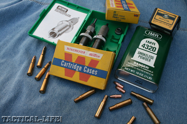 Ammunition in .303 Savage is extremely hard to come by, so I have to craft my own. I was fortunate to pick up several boxes of virgin brass and a set of RCBS reloading dies, along with the rifle, to accomplish this. My pet load consists of a Speer 170-grain Hot-Core bullet and a dose of IMR 4320 powder, which yields about 1,800 fps and change. This is hardly a maximum load, but hits steel plates with authority and will group inside of 2 inches at 50 yards. If I need a little more juice, I simply reach for its younger cousin.