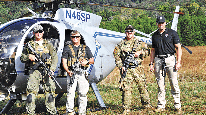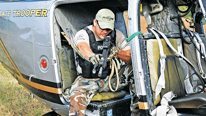 The KSP Special Operations Branch includes the agency’s aviation unit and the Special Response Team (SRT), a full-time team that has extensive experience working with the agency’s aviation unit. Their complete SRT unit attended the training along with officers from other Kentucky agencies, Florida and Indiana. The KSP team utilized their issued HK416 rifles equipped with Aimpoint optics, SureFire lights and PEQ laser units. The rest of the class used a variety of M4-type carbines with the exception of two officers, who ran LaRue Tactical OBRs in 7.62mm NATO. A few officers ran SureFire sound suppressors, which eased the muzzle blast for both the shooter and the pilot.