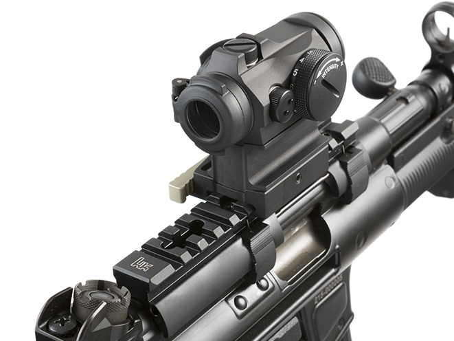 The top of the receiver is like an older MP5’s, but it now sports a rail for adding sights and optics. I personally like this rail, but some HK fans on hkpro.com seem to prefer the classic look. Thankfully, the rail is attached to the receiver with removable setscrews.