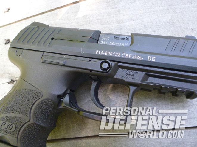 Like the other P30 series pistols, the P30SK is available in several trigger configurations. My test sample used a traditional double-action/single-action (DA/SA) trigger and a hammer decocker. Another model, the P30SKS, has an additional safety lever on both sides of the frame in addition to the decocker, which may appeal to those who wish to carry the pistol in a holster “cocked and locked” and don’t mind adding about 0.25 inches of width per lever.