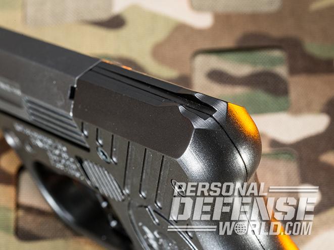 There are no sharp edges on the Pocket Pistol. All of its edges are rounded and well contoured. You’ll notice the heel of the pistol’s butt is exaggerated, and this feature locks the gun positively into the shooter’s hand. This feature, combined with the extremely low bore axis, makes the gun tolerable with the shotgun and 7.62x39mm rounds.