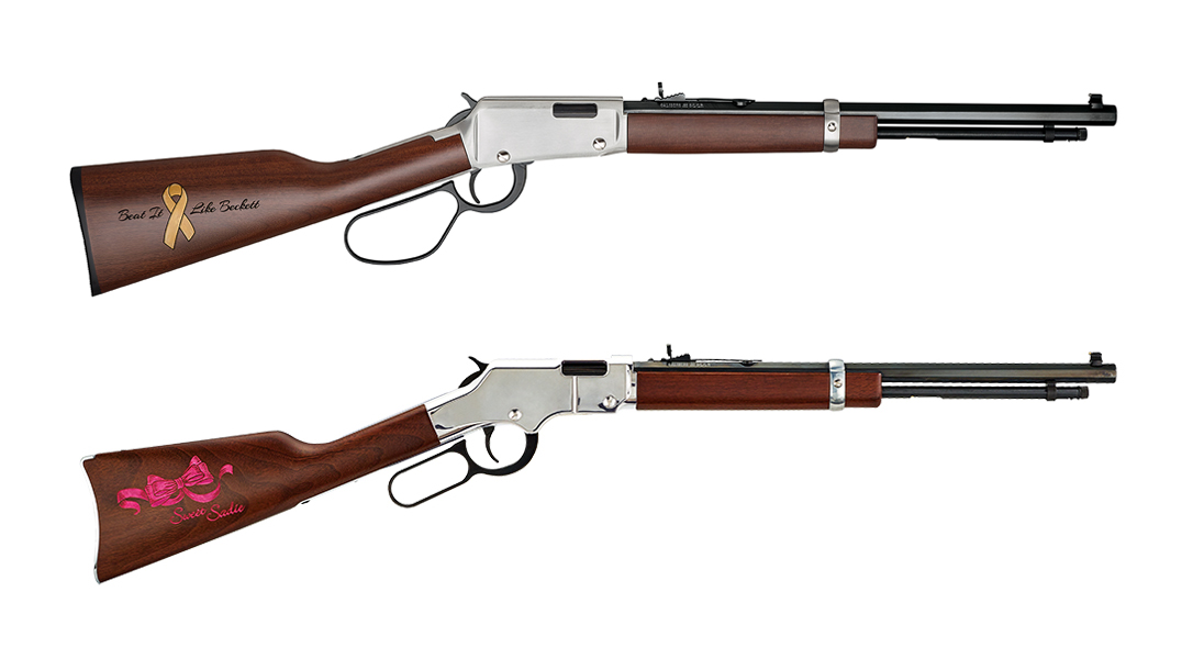 The “Beat It Like Beckett” edition rifles feature a unique configuration. It comes with a large loop lever, brushed metal receiver cover and 17-inch blued steel octagon barrel. The buttstock engraving portrays a hand-painted gold ribbon, the symbol for the fight against childhood cancer. It also comes inscribed with the words, “Beat It Like Beckett.” Unique serial numbers range from “BECKETT01” to “BECKETT60.” For more information, visit henryusa.com/beckett.