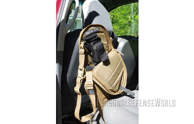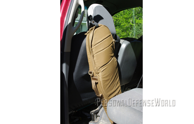 The small accessory bag on the side holds two more 30-round magazines in elastic bands. Or it can hold a handgun. It can also be worn on your belt with a handgun, where it looks like a camera or PDA case. It also has a breakaway zipper for fast access. The owner of the company tells me that they are working on a version that has Kevlar for ballistic protection. The operator will be able to kneel behind the bag and use it as a shield. I keep this bag hanging on the back of my truck seat and tell anybody nosy enough to ask that I am an avid tennis player. I hope the questions stop there because if anybody wanted to talk about tennis I’d be lost. I have never played the game and do not want to.
