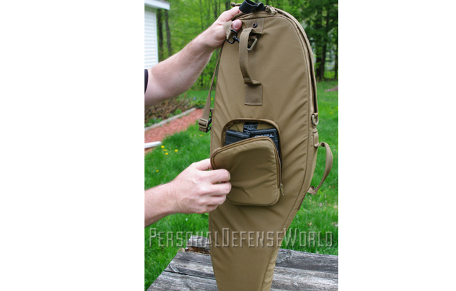 If you are a hunter, you already know these guys. Renegade Ridge’s parent company, Crooked Horn Outfitters, are the folks who invented the Bino Buddy binoculars harness, which is the best way I know to carry binoculars in the field. The Liberator Discreet is perhaps the most “tactical” of the bags tested, for several reasons. It can house an M4-style AR-15 with an adjustable stock, ready to go mounted optic and a 20-round magazine (assuming carrying loaded rifles is legal where you live). The main case is made from Cordura nylon and has a 28-inch, breakaway zipper that can be opened quickly by pulling on the hand strap and the handle, allowing access to the rifle in about two seconds. The case can be hung in a closet by its strap, or you can slip the strap over your vehicle’s headrest and hang the case behind the seat.