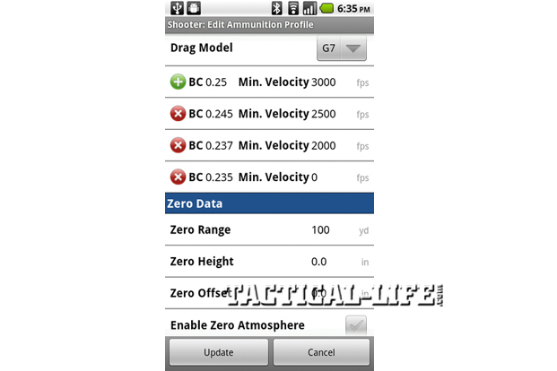 Using the latest databases for bullets, this computer program combines ballistic solutions and delivers them for all atmospheric conditions. The app uses your GPS position to secure the weather information from the nearest weather reporting station, plus it supports the free Bluetooth Kestrel Weather Meter plugin. You can also calculate Coriolis effect and spin drift calculations with GPS latitude data. Graphs help you compare bullet trajectory and see wind effects.