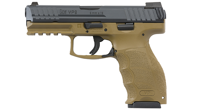 Available in both Flat Dark Earth (FDE) and Grey, the colored frames are manufactured using special colorants added to the frame during the molding process and are available in both 9 mm (VP9) and .40 caliber (VP40). They include all the same features as a standard VP. The VP Tactical — available in both 9mm and .40 S&W — also share the same features as standard HK VP pistols, but with an added premium grade threaded barrel. According to HK’s website, only their weights and lengths differ, thanks to the longer and slightly heavier threaded barrel.