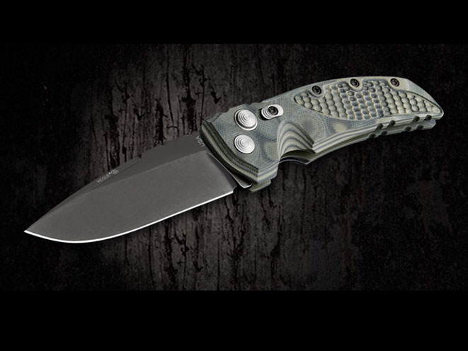 Hogue Inc, America’s premier manufacturer of firearm grips, rifle stocks, AR components, knives, holsters and gear is pleased to announce the addition of three new automatic knives to its popular line of American-made manual folding knives. The new autos are spring-loaded versions of Hogue’s EX-01, EX-03 and EX-04 Tactical Folding Knives, all of which feature a robust button lock and a 3.5” 154 CM hardened steel blade. “This is a big step for Hogue Knives,” said Hogue managing partner Jim Bruhns. “We worked hard to create an incredibly reliable auto knife based on our button lock knife platform. We’re proud to offer these superior cutting tools to our customers.”