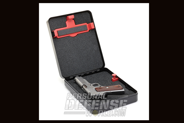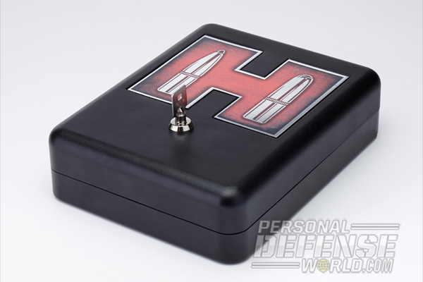 Moving on to Hornady’s key-operated TriPoint Lock Box, Amselle recognized one of the TriPoint’s most important features: portability. “The…exterior dimensions make it easy to fit into a range bag or suitcase for travel, and it has been TSA-approved for air travel. Just make sure your handgun is unloaded, the case remains in checked baggage and you declare it at the ticket counter,” says Amselle. “It also features an industry first TriPoint triple lock mechanism that uses 0.5-inch-wide steel lugs to engage the lid of the safe to the body at three points of contact.”