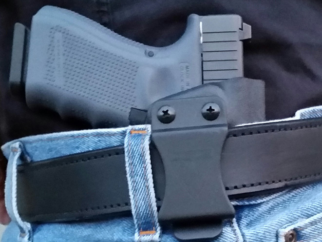 I recently acquired a Glock 19 Gen4 pistol to use as my everyday-carry gun and obtained a DSG Arms CDC holster to fit it. I wore the holster to the range to try out my new Glock, placing it behind my right hip, inside my jeans, secured to a heavy-duty, 1.75-inch-wide leather belt.