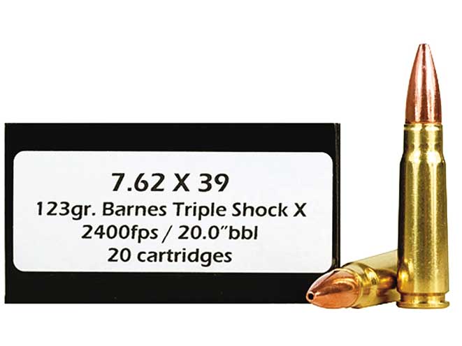 Loaded with 123-grain Barnes Triple-Shock X (TSX) bulletss, the DT Tactical rounds from DoubleTap Ammunition offer superior penetration and fantastic accuracy. The bullets are completely made of copper for great weight retention. From antelope to a drug-crazed home invader, the 7.62x39mm DT Tactical round can stop a recipient in its tracks. (doubletapammo.net; 866-357-1066)