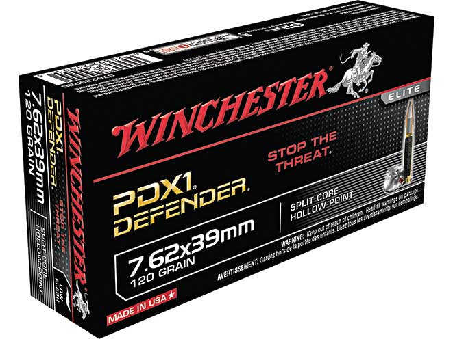 Without a doubt, the Winchester PDX1 Defender is one of the premier self-defense rounds in 7.62x39mm. This purpose-built load uses a bonded hollow point to ensure weight retention without hampering expansion. It is designed specifically for semi-automatic weapons and performs impressively in the testing I have witnessed. There are several good choices in this caliber, but this round from Winchester is what I load my magazines with. (winchester.com)