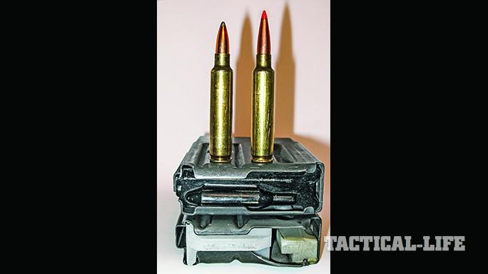 DPMS used to offer VLD magazines (bottom) that allowed for longer cartridges like Hornady’s 75-grain A-MAX (right).
