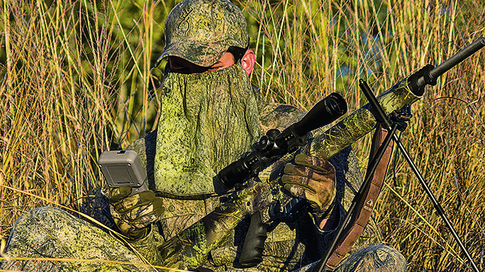 I recently had an opportunity to put the system to the test. I only had the afternoon to hunt, so I gathered my gear and headed out to a local ranch. This particular location only encompasses about four sections, but it’s composed of some low bluff country that borders a river, so it’s almost always good for some coyote action. I parked the truck and made my way along the top of the bluffs, stopping to glass here and there. The last spot overlooked the river and as I was scanning around I spotted a dog slowly making his way toward me from the river. He appeared to be tired and shortly bedded down in some high grass. He was too far for a shot, though—at 820 yards according to my Geovids. But there was a ridge to my left that would allow for a closer shot if I could just get to it undetected. I gathered my gear and, as stealthily as possible, made my way towards the closer ridge.