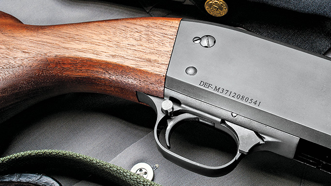 Studs for sling swivels at the front of the magazine and towards the rear of the stock make it easy to use a sling on the Defense Gun. Speaking of the stock, it is fitted with a nice, thick recoil pad—a feature I appreciated when shooting 3-inch magnum loads while testing the gun. The firearm’s grooves offer a good gripping surface for fast operation.