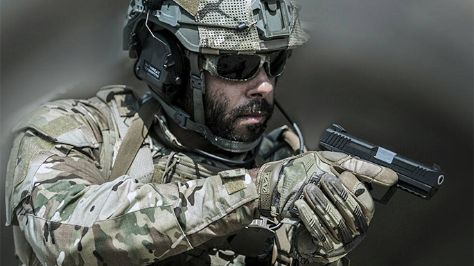 The pistol comes with or without a manual safety, pending what the shooter wants. It also has an easily rackable slide with improved front and rear cocking serrations; enhanced ergonomics with an improved grip angle; and a low barrel axis for reduced recoil.