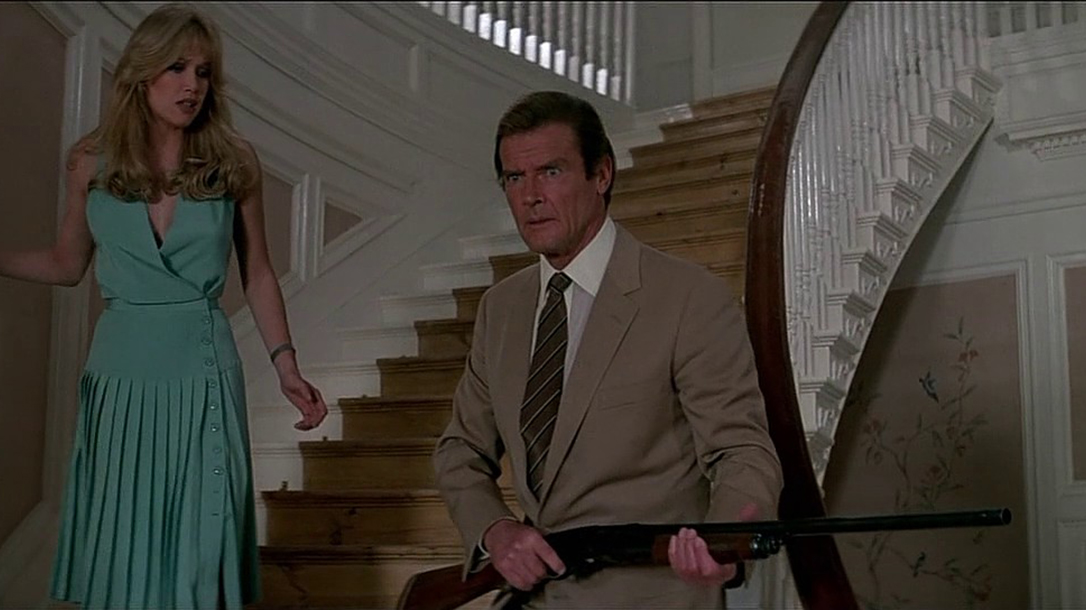 Interestingly, the Walther PPK made a return in Moore’s final Bond movie. Later in the film Bond was seen carrying a shotgun provided by “Bond Girl” Stacy Sutton (Tanya Roberts). At first it was a Remington Model 31, but in subsequent scenes it became a Winchester Model 12 Field Gun. In either case, when Bond used it against the henchmen he found it loaded with rock salt rounds.