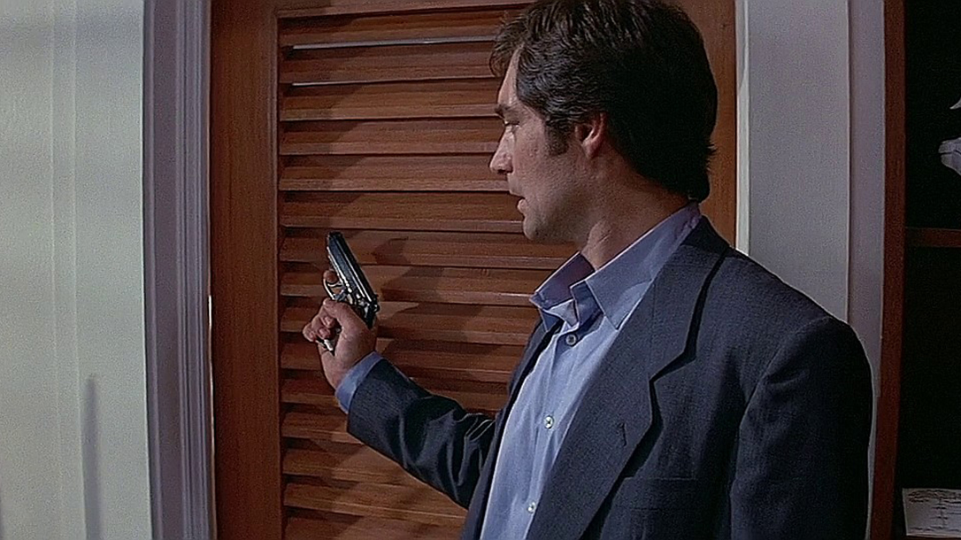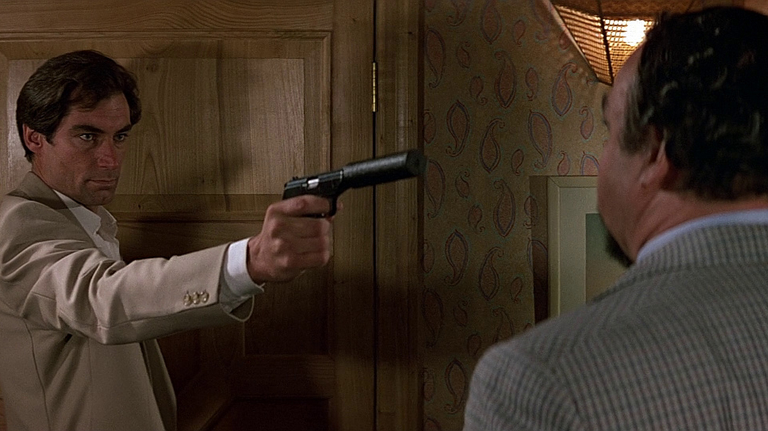 Dalton’s Bond once again was armed with the PPK. He also uses a Taurus PT92 provided by Leiter in the pre-credit sequence. Later in the film Bond acquired a Beretta 950 Jetfire. However, among the more unusual firearms in this one is the Signature Camera Gun provided by Q. It featured a fingerprint recognition mechanism in the pistol grip and fired a .22 high-velocity round.
