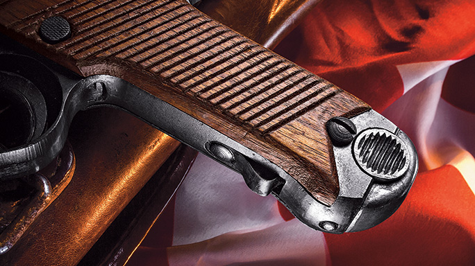 Within a few years, Nambu had modified the original pistol by changing the shape and size of the trigger, adding a swiveling lanyard ring on the rear of the frame and replacing the wooden magazine base with those made from aluminum. While the Japanese Navy referred to them as “Army Type Automatic Pistol” and “Type 4 Automatic Pistol,” they are known to collectors today as the “Papa” Nambu. Between the world wars, Siam (Thailand), a perennial customer of Japanese arsenals, purchased numbers of both types of pistols while others were provided to pro-Japanese factions in China.