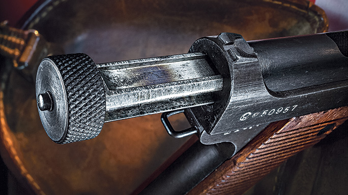 As were many early semi-auto military pistols, the Model 1904 pistol could be ordered with the option of a wooden holster/shoulder stock, which had a telescoping nose section that was extended before attaching it to a slot in the butt of the pistol. As was SOP with shoulder-stocked pistols, the Nambu sported a tangent rear sight that was adjustable from 100 to (a wildly optimistic) 500 meters.