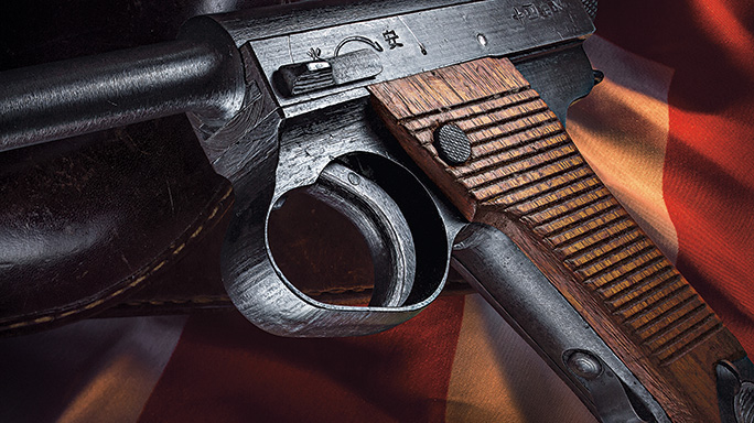 The 7mm Nambu cartridge of the pistol consisted of a rimless, bottlenecked case 20mm long whose minuscule 56-grain FMJ bullet achieved a reported velocity of 1,200 fps. As a combat handgun it was a joke but, because of its high price tag, it was a status symbol for more affluent officers who could afford one. Japanese officers also purchased large numbers of foreign pistols from dealers and officers’ cooperatives. These were mostly 7.65mm (.32 ACP) automatics, with German and American brands being the most popular.