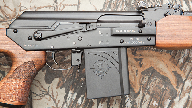 Rifles in the VEPR series are sporterized versions of the AK intended for the hunting segment of the market. Compared to a wide peer group of AK-style rifles, VEPRs are built at the Russian Molot factory, where they’re made to heavier-duty RPK standards. There are several variants of the VEPR that differ with respect to features such as stock design and sights, but they are all significant upgrades in quality compared to service-grade AK rifles. A number of chamberings are available, too, including models in 7.62x39mm, 5.45x39mm, .223 Remington and .308 Winchester. VEPR rifles have been imported at various times by several companies, and K-VAR Corp. of Las Vegas, Nevada, is currently importing the entire product line. K-VAR is known for importing the best-quality AK variants, including VEPRs and milled-receiver Bulgarian AKs.