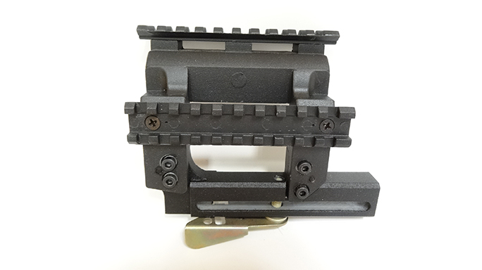 BP-02 AK To Weaver Mount: This features a 110mm-long center-bore-mount top rail plus a 110mm side tactical rail for mounting lights, lasers and other accessories. It sits high enough to allow co-witnessing with iron sights.
