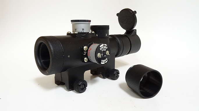 POSP/PSO Series: Manufactured in Russia by NPZ, which is famous for its quality and durability, these scopes are currently issued by the Russian army. These scopes come in lower magnifications for urban sniper operations and higher magnifications for long-range engagements. The 2.5x18mm PSO is a wide-angle scope with a red-illuminated German post reticle with rangefinding capabilities. It comes with a side-mount clamp that’s compatible with AK or SKS/SVD rifles. The unit is powered by one CR2 battery. Expect a battery life of 50 hours. Additional PSO features include a retractable front sunshade, protective turret caps and a rear rubber eyepiece.