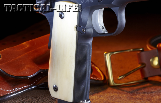 Beauty may only be skin deep, but when it’s a Kimber that’s good enough—because everything underneath is already perfect. A terrific example is the new Classic Carry Pro, a Commander-sized .45 ACP that builds on the already established Kimber reputation for manufacturing some of the finest Model 1911 pistols in the 100-plus-year history of the design. The new Classic Carry Pro is handcrafted in the Kimber Custom Shop, so every feature is honed to perfection. These include the 4-inch bushingless match-grade bull barrel, deep serrated flattop slide, lowered and flared ejection port, lightweight custom trigger, ambidextrous thumb safeties, oversized beavertail, plus skeletonized and serrated hammer. But that’s just the operative end. The finish is what adds “Classic” to this gun’s name. Charcoal blued by the craftsmen at Turnbull Restoration, the Classic Carry Pro shines like a show gun. The finish is combined with a contoured round heel frame, hand gripping 24 line-per-inch checkering on the frontstrap, and serrated lower gripstrap—all dramatically set off by a pair of polished, hand-fitted bone grips locked down with blued hex-head screws. Any better looking and you’d be afraid to shoot it. But that is what the Classic Carry Pro is meant to do.