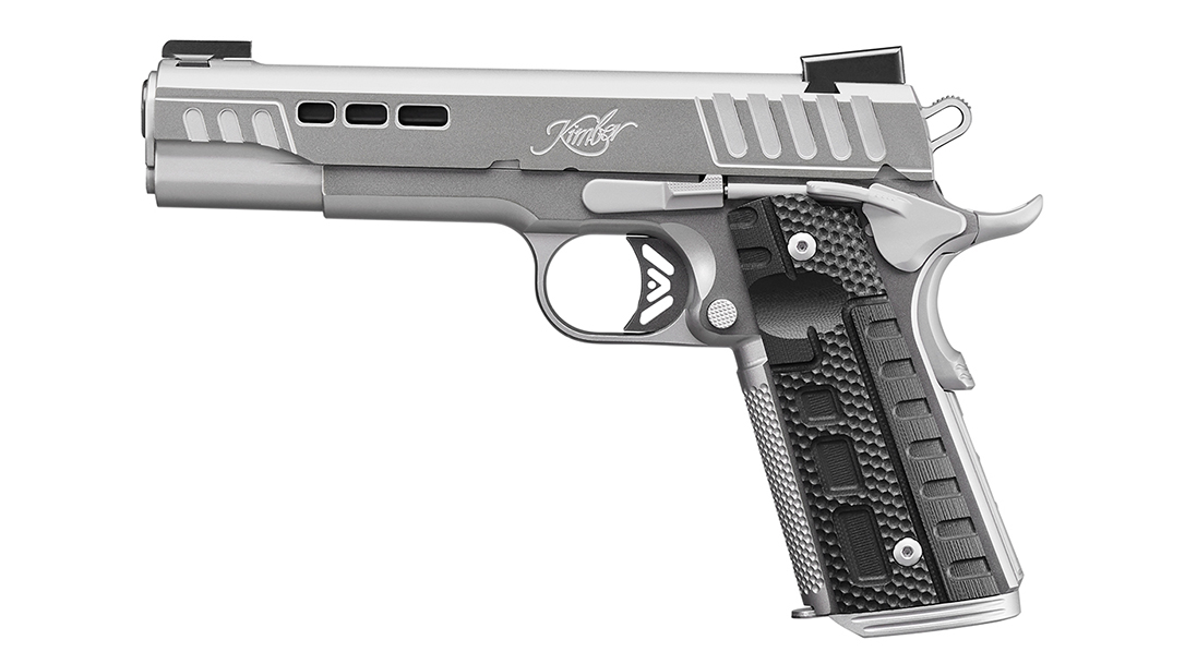 All these are coupled with the standout features that can be found across the Kimber 1911 Custom Platform, according to Kimber. The barrel is machined from solid stainless steel to critical match grade dimensions, hand fitted barrel and chamber are cut to critical match grade dimensions, allowing each pistol to realize its true accuracy potential, lowered and flared ejection port lets ejecting brass easily clear the slide, match grade trigger breaking crisp and clean for increased confidence and accuracy, and a commander style hammer which will not snag.