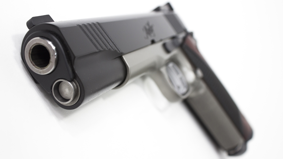 This 1911 starts with a 5-inch, match-grade barrel. But Kimber’s barrel-fitting process speaks volumes about the company’s commitment to accuracy. The stainless steel barrel is specifically oversized so Kimber Custom Shop gunsmiths must fit it by hand for optimal accuracy. The barrel is paired with a stainless, match-grade bushing and a 12-pound recoil spring with a full-length guide rod.