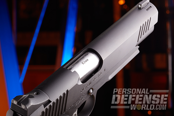 One of the most popular 1911 pistols designed to meet the need for light and laser attachment is the Kimber TLE/RL II. The Custom TLE (Tactical Law Enforcement) was designed with input from the Los Angeles Police Department’s SWAT team, and they carry it today in .45 ACP. It is simple, rugged and includes a rail for the addition of a tactical light. Although designed by a SWAT team, it has gained traction among civilian 1911 shooters. With a retail price at under $1,200 it is one of the most affordable tactical 1911 pistols on the market, putting it within reach of many potential users. Once only available in .45 ACP, the 10mm option adds an entirely new dimension to this pistol.