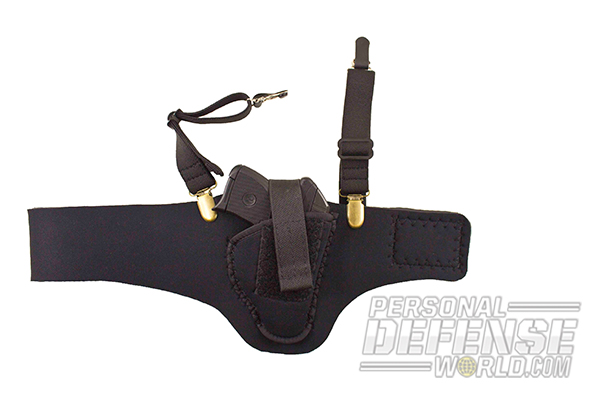 Another company who recently introduced thigh bands is Femme Fatale. They also make an ankle sleeve holster and a corset-style holster. These are a fabric covered in lace. For a girly girl, it was love at first sight and I wanted one in every color! The thigh band is a slip-on with a pocket for a small- to mid-size pistol. There are a couple other manufacturers that make a thigh band that also have garters or a waist strap to make it feel more secure. I have never found a need for these, but if that is what makes you comfortable, wear what feels right to you.