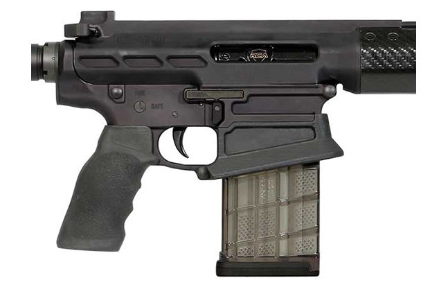 - Upper receiver includes integral carbon-fiber handguard with optional length Picatinny sight rails