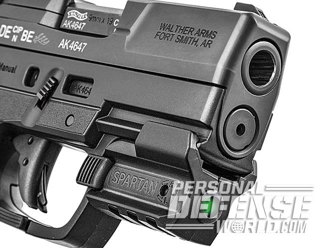 I tested red and green Spartan lasers by fitting them to a Walther PPS 9mm and a .40 S&W Springfield Armory XD-S. I also outfitted the Springfield with a 170-lumen Walther Tactical Pro flashlight mounted to the Spartan’s integral rail using a Walther quick-release mount. This is a noteworthy asset for home-defense use.