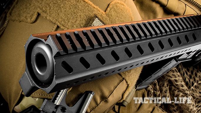 One of the most obvious issues with using any sound suppressor under a handguard is heat, and I brought this up to Pruitt. He explained that the LMT CSW is not a battle rifle but instead a specific-use weapon meant to fire a limited amount of rounds in specific scenarios. “It was meant to clear buildings room to room and get out,” Pruitt said. He said that 60 to 90 rounds could be fired before the handguard got too hot. Obviously utilizing a pair of gloves is a good idea when shooting long strings of fire through the CSW, although I fired many rounds without them.