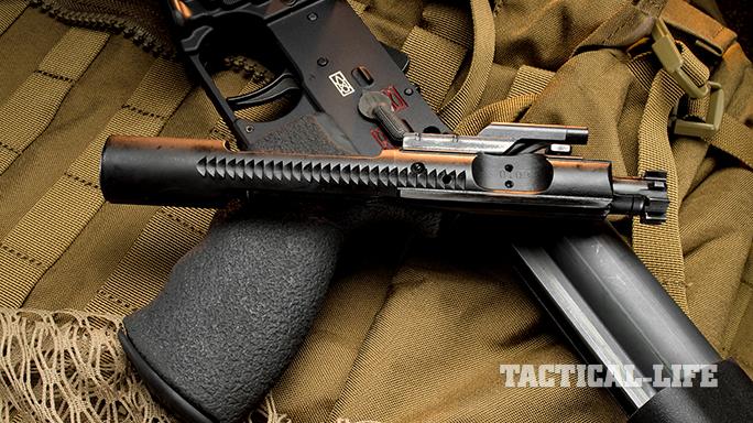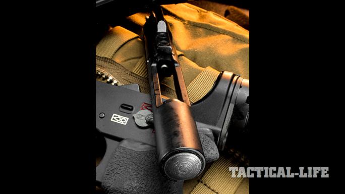 In fact, the highest priority for the LMT CSW was functionality, and the gas system’s cyclic speed was researched considerably to be sure the carrier was moving appropriately while avoiding bolt bounce. The second priority was developing a suppressed system while keeping a 10.5-inch overall barrel length. LMT worked with suppressor manufacturers for some time but in the end decided to develop its own product. “We worked closely with Lawrence Livermore National Labs, which is run by U.S. Army Armament Research, Development and Research Development Center (ARDEC),” Pruitt explained. “They basically think of impossible things and develop technologies.” Eventually, ARDEC licensed its fluid technologies to LMT to develop suppressor technologies.