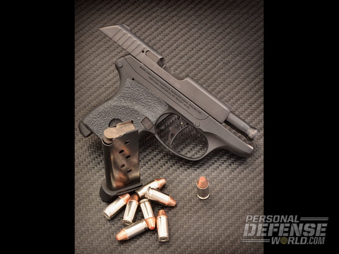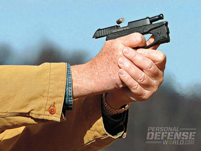 At 7 yards, using a Weaver stance and a two-handed hold, the improved Galloway LCP was surprisingly accurate and quick to get back on target. Recoil was still brisk with high-performance personal defense loads, but less than before the Galloway upgrades. The real key to improving the LCP, however, is the trigger and the ease with which the gun can be fired. Trigger pull is still heavy, and necessary since this is the only manual safeguard the gun has and a light trigger pull would be more of a detriment than an asset. A trigger that is easier to operate and provides a smoother discharge is a definite plus here. The modified seven-round magazine also experienced zero issues with feeding during the test.