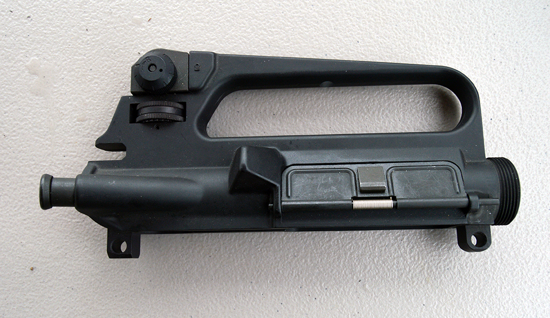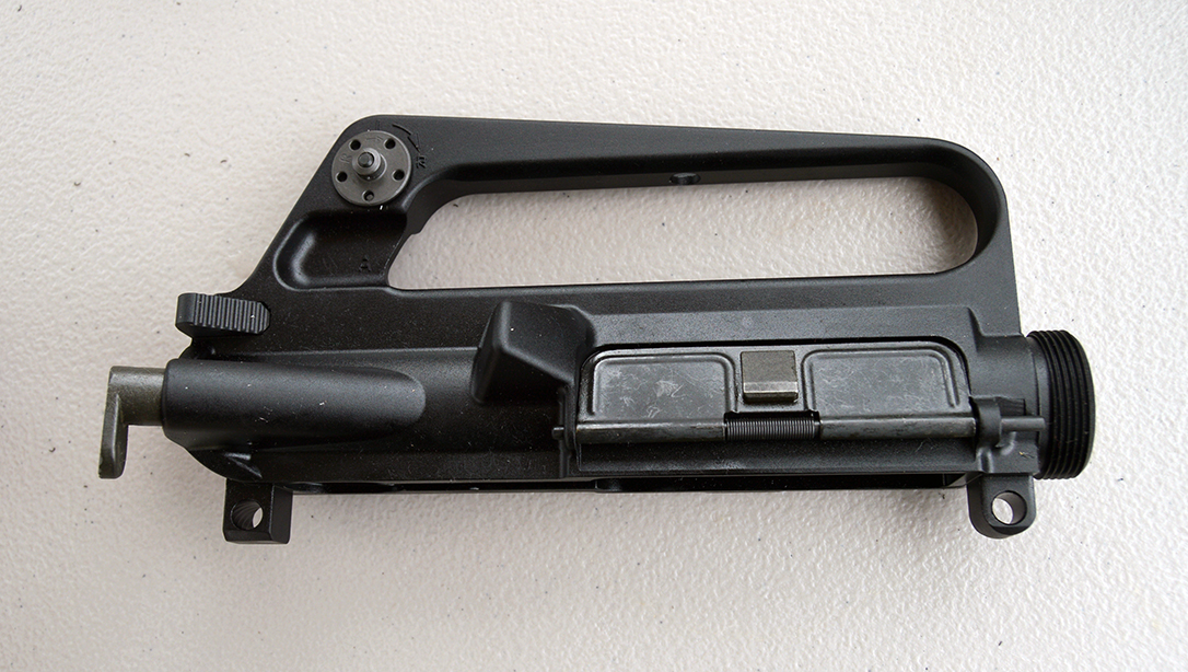 The upper receiver of the former was simply an M16A1 upper with the now familiar case deflector bump. (Rock Island Arsenal developed the “Brunton Bump” to protect left-handed shooters from hot ejecting brass.) It retained the M16’s original two-position flip rear sight. This is also style of upper used by Colt and Diemaco on the early Canadian military C7 rifle and C8 carbine. The receiver was tested by the U.S. armed forces in the 1970s before the M16A2-style upper, with its versatile windage and elevation adjustable rear sight, was standardized in 1984.
