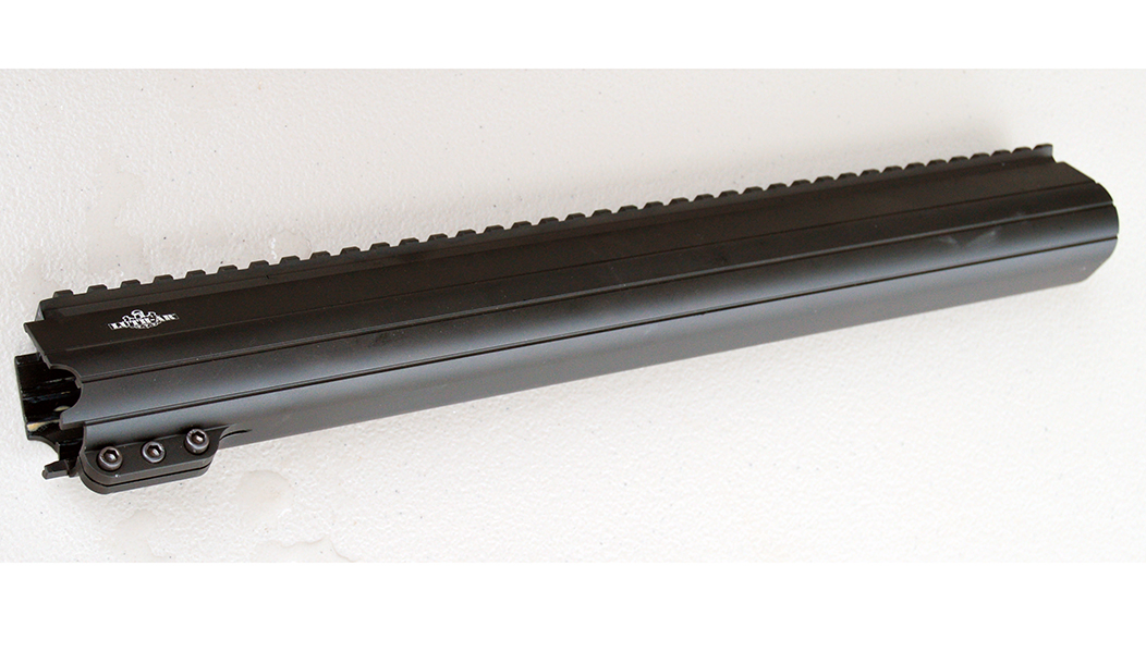 The main merit of the vintage triangular M16 handguards, probably their only merit, was that the swell on the bottom made the fore-end easier to hang onto in full-auto fire. To capture that feature for the builder who doesn’t want to go full-retro, LUTH-AR created its Palm Handguards. This free-float, extruded, hard coat black anodized, 6061-T6 aluminum handguard includes its own barrel nut. It comes as a sleek, solid fore-end or tactical-style with M1913 rail on the crest, key-mod cuts on the top faces, and lightening cutouts on the sides. It is available in 7”, 9” 13.5” and 15” lengths from $59.95 to $89.95.